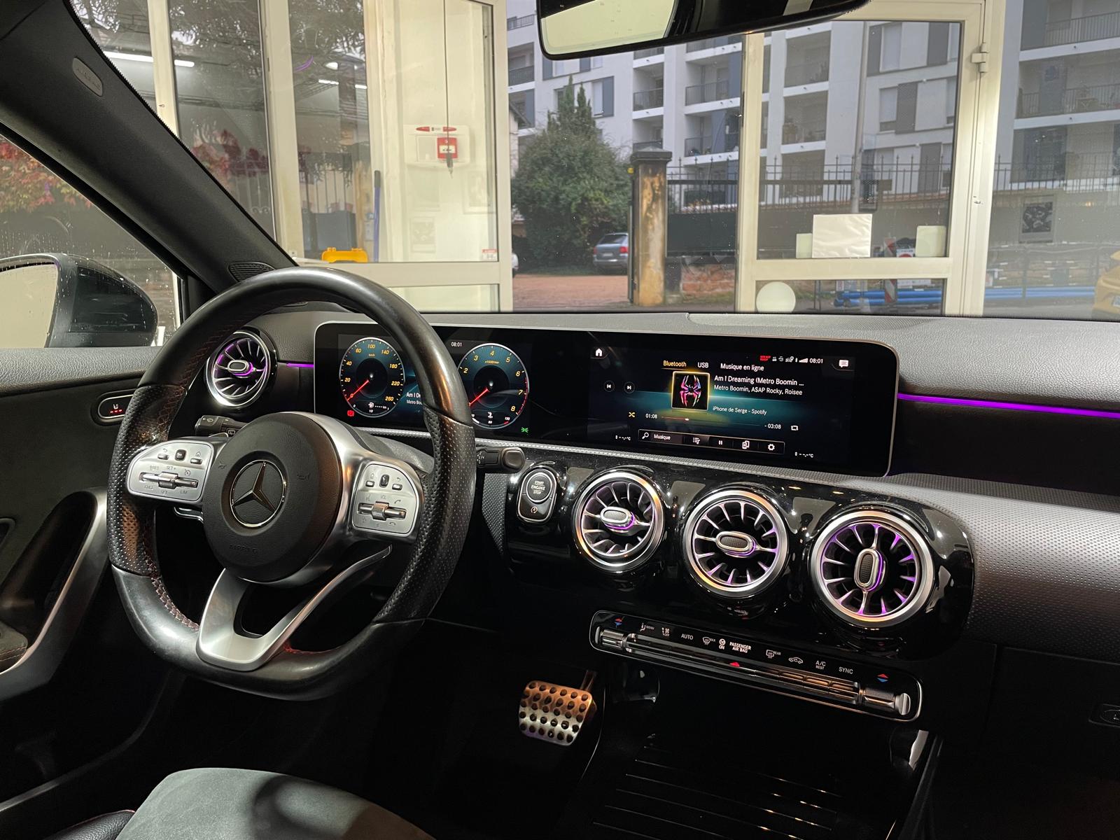 Mercedes classe A 200 PACK AMG - SUIVI COMPLET - ÉCLAIRAGE D'AMBIANCE LED - SIÈGES CHAUFFANTS - ORIGINE FRANCE - CAMÉRA DE RECUL - SONO FOCAL - LECTURE DES PANNEAUX - KEYLESS GO